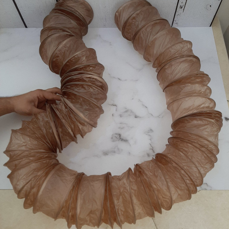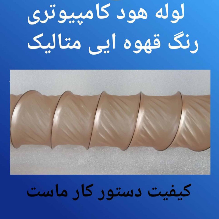 وله خرطومي هود سفارشی مدل کامپيوتري با قطر سايز 12 سانت و رنگ قهوه ای متالیک ميباشد که با کيفيت بالاتر و مقاوم تر نسب به مابقي لوله هاي خرطومي هود ميباشد طول لوله خرطومي در حالت باز 4 متری هستش اين لوله خرطومي هود از مواد اوليه نانو توليد شده است. اين لوله هواکش آکاردئوني براي مسيرهاي غير مستقيم بسيار مناسب است و نياز به زانو و شيفتر را برطرف ميسازد و مشکل کج بودن مسير دريچهي خروجي به هواکش را به خوبي برطرف مي کند