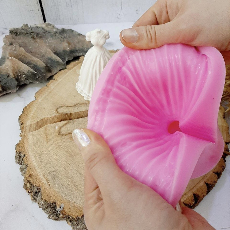 قالب شمع سيليکوني مدل عروس با برند #کوشااکسسوری يه کار خاص و استثنايي ميباشد اين قالب مناسب شمع سازي ، اکسسوري سنگ مصنوعي ، صابون سازي ميباشد که با بالاترين کيفيت و بهترين نوع سيليکون توليد شده است قالب بدون حباب ، نرم و قابل انعطاف ميباشد ارتفاع خروجي کار 10 سانت ارتفاع قالب 11 سانت مهم : قالب داراي يک برش از يک طرف جهت درآوردن خروجي کار از قالب ميباشد