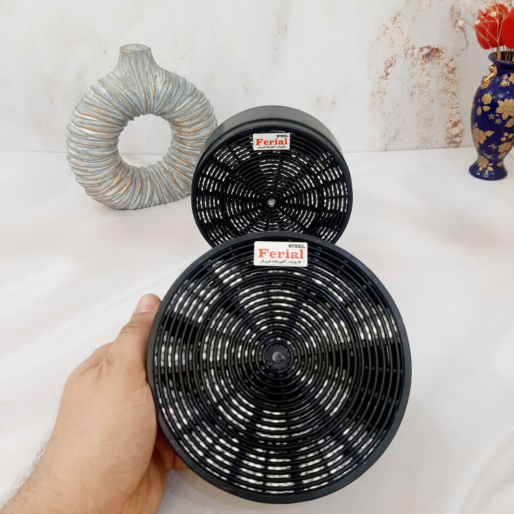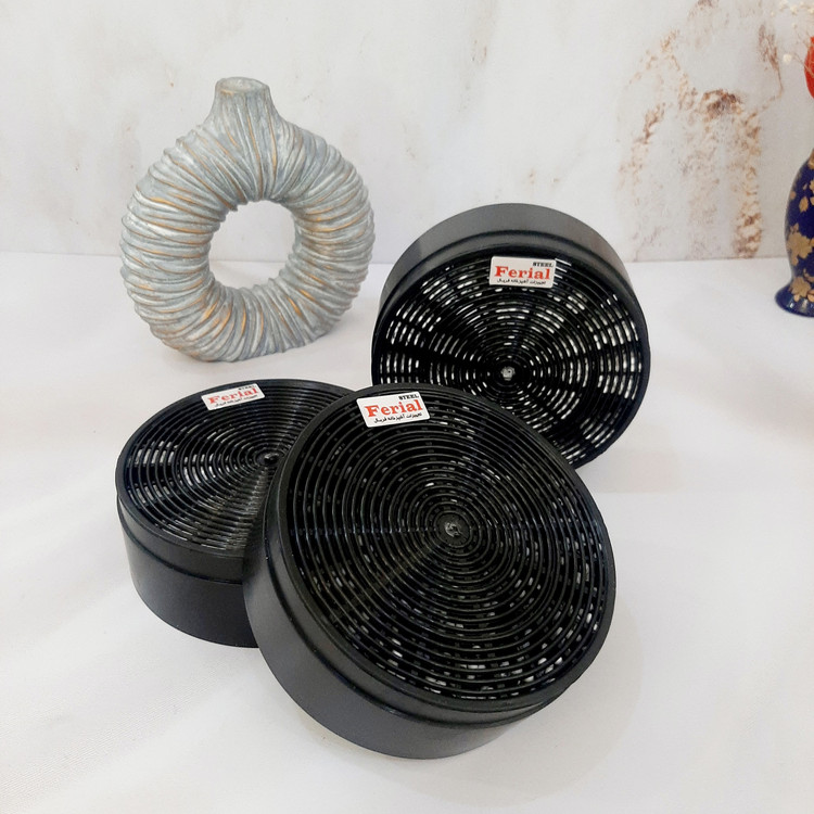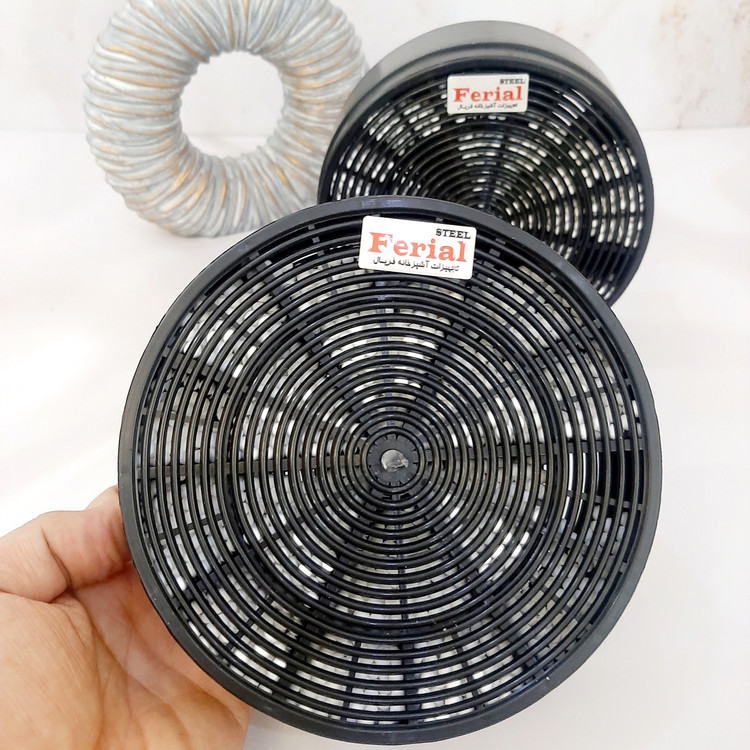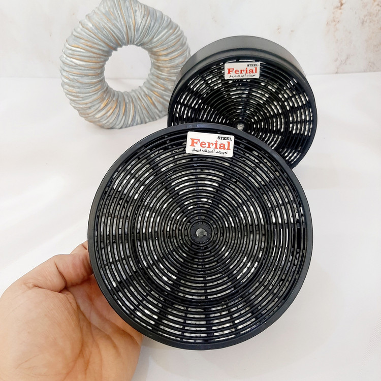 فیلتر زغالی هود فریال Ferial بسته 3 تایی با ذغال کربن سفید درجه یک بهترین وسیله برای زمانی که خروجی هوا به بیرون ساختمان نیست و محدودیت نصب لوله هود خرطومی برای هدایت بو و چربی به بیرون ساختمان است و با قرار دادن فیلتر ذغالی روی خروجی هود چربی و بو از طریق ذغالی های کربن داخل فیلتر جذب می شوند . فیلتر ذغال فریال Ferial از بهترین ذغالی کربن (ذغال سفید ) تولید شده ، بازه زمانی ۱۸۰۰۰ ساعت برای یک دوره استفاده میباشد قطر فیلتر ذغالی استاندارد و ۱۵ سانت میباشد زمان تعویض فیلتر ذغالی بسته به مصرف بین 2 الی 3 ماه میباشد
