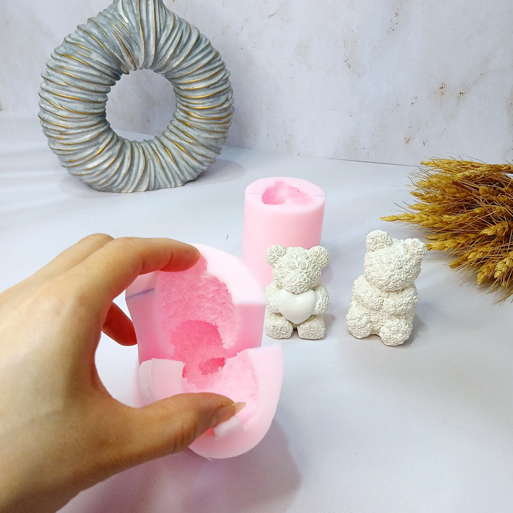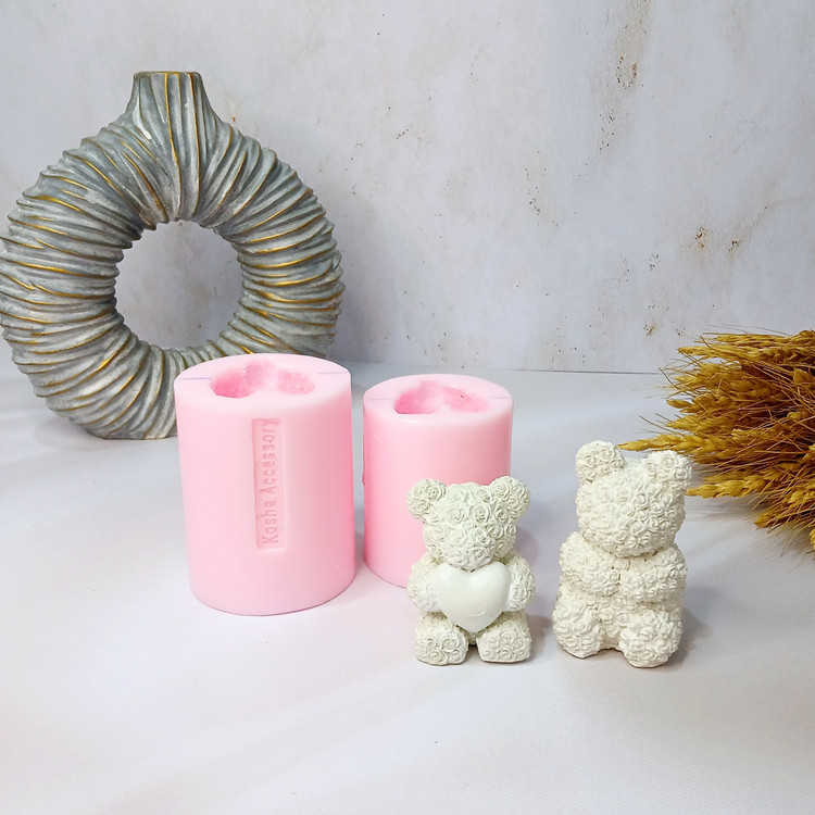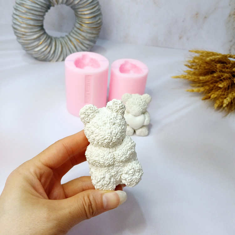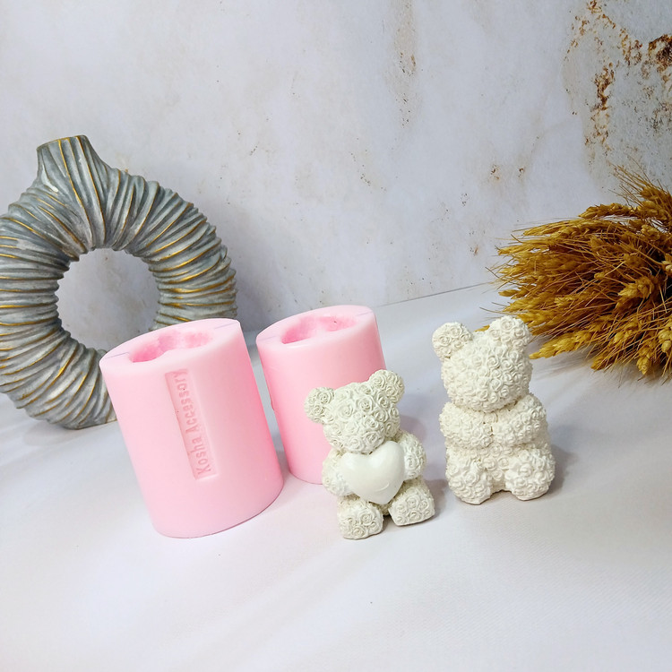 ابعاد حدودی خروجی کار: ابعاد خروجی شمع از قالب خرس قلب دار با ارتفاع 6 سانت و خرس گل دار با ارتفاع 7 سانت