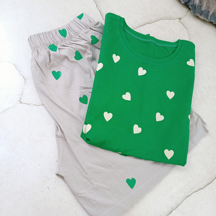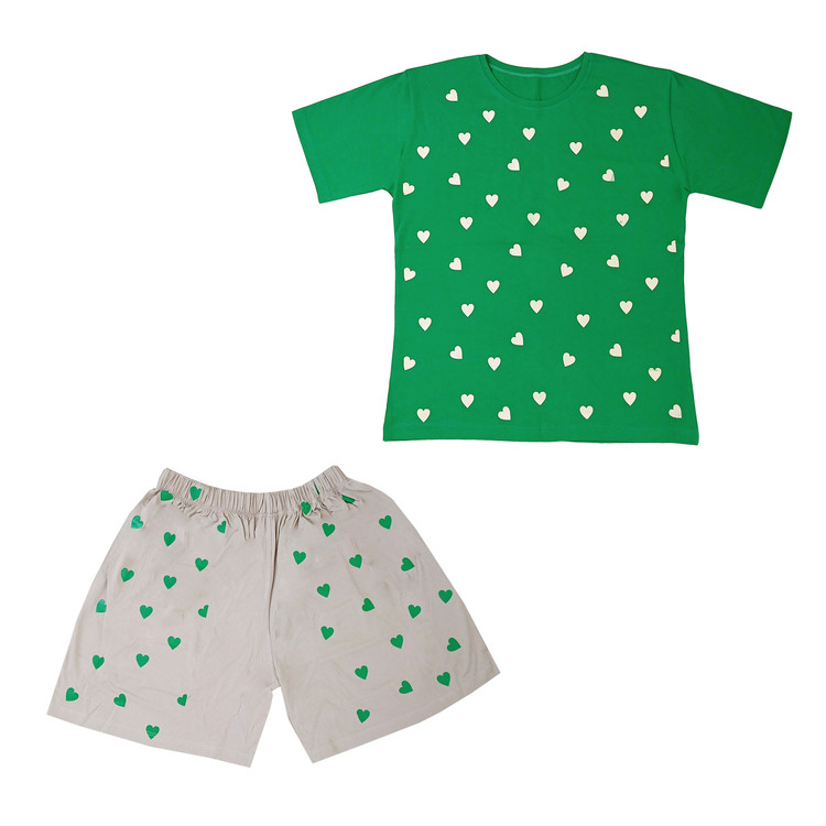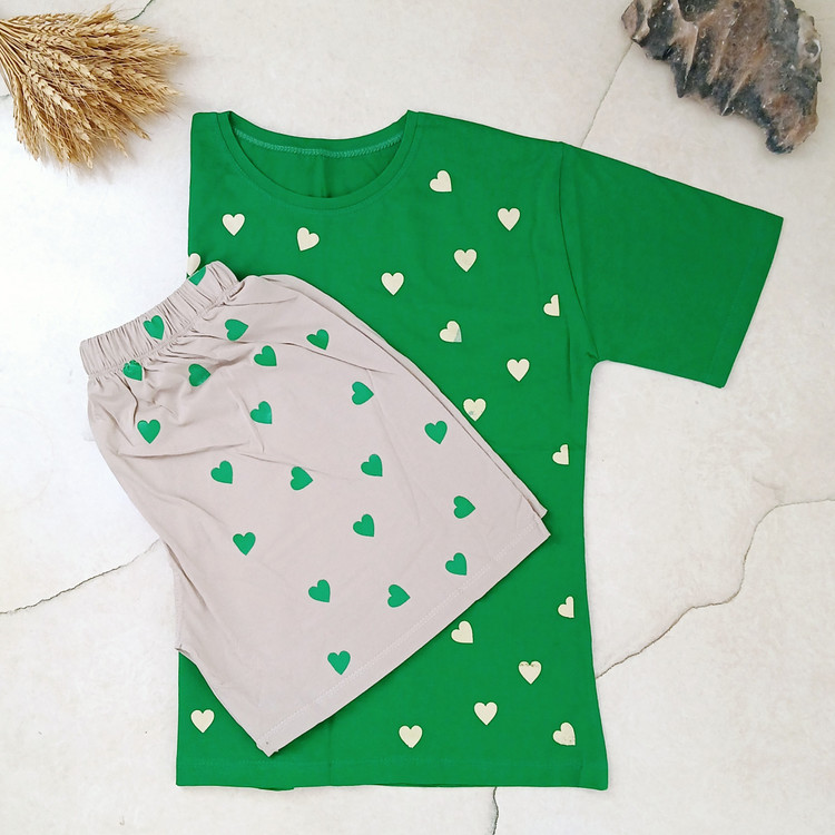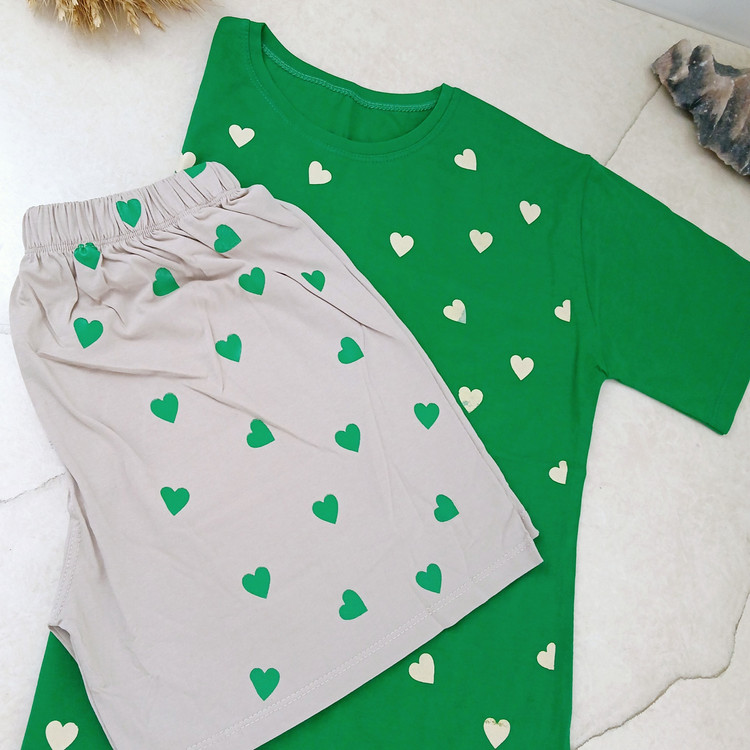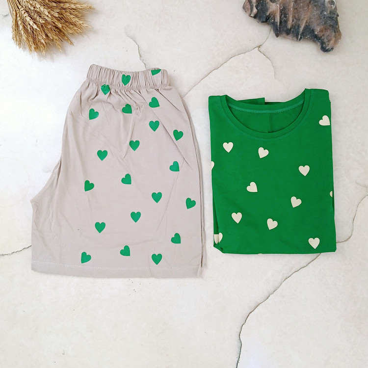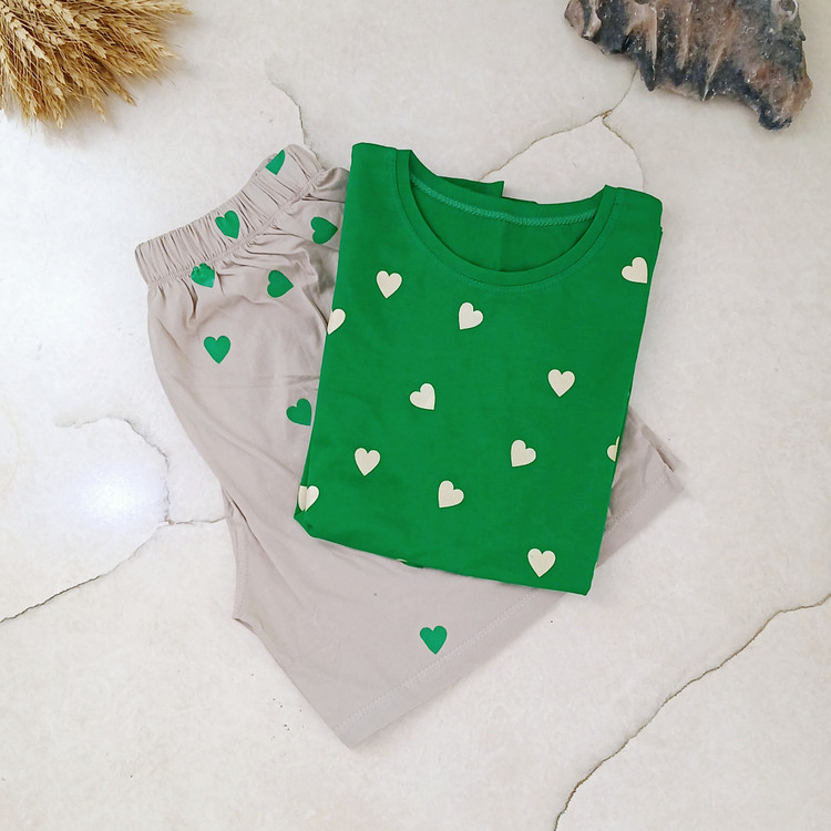تی شرت سبز و شورتک طوسی
