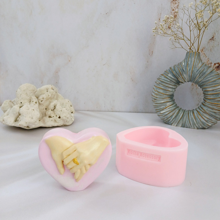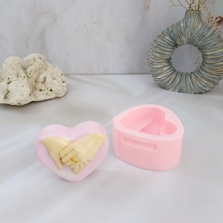 قالب شمع سیلیکونی مدل قلب دست و حلقه با برند کوشا اکسسوری کار شیک ، استثنایی و جدید میباشد این قالب مناسب شمع سازی ، اکسسوری سنگ مصنوعی ، صابون سازی ،مجسمه سازی و رزین میباشد که با بالاترین کیفیت و بهترین نوع سیلیکون تولید شده است قالب با تضمین بدون حباب ، نرم و قابل انعطاف میباشد ابعاد خروجی قلب از قالب با طول و عرض 8*9 سانت وپهنای 4/5 سانت میباشد