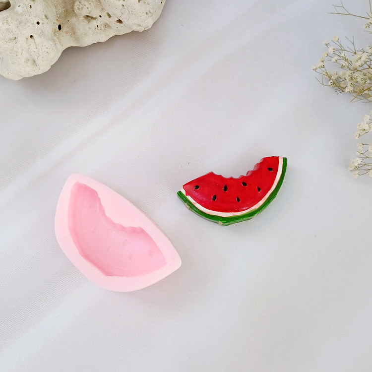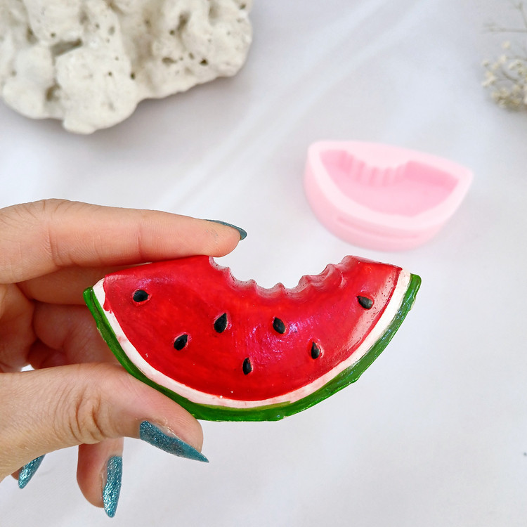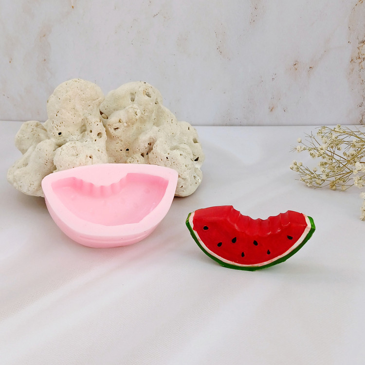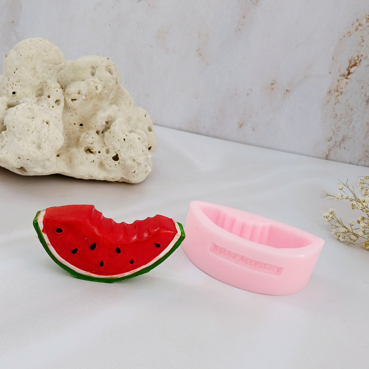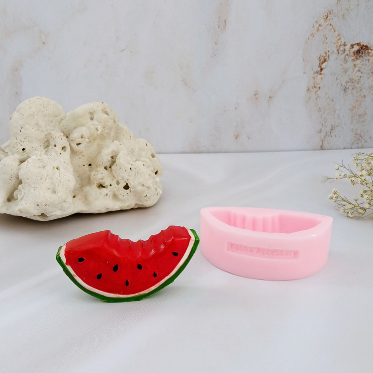 قالب شمع سیلیکونی مدل هندوانه گاز زده با برند کوشا اکسسوری کار شیک ، استثنایی و جدید میباشد این قالب مناسب شمع سازی ، اکسسوری سنگ مصنوعی ، صابون سازی ،مجسمه سازی و رزین میباشد که با بالاترین کیفیت و بهترین نوع سیلیکون تولید شده است قالب با تضمین بدون حباب ، نرم و قابل انعطاف میباشد ابعاد خروجی هندوانه از قالب با طول و عرض 4*8/2 سانت و ارتفاع 2 سانت میباشد