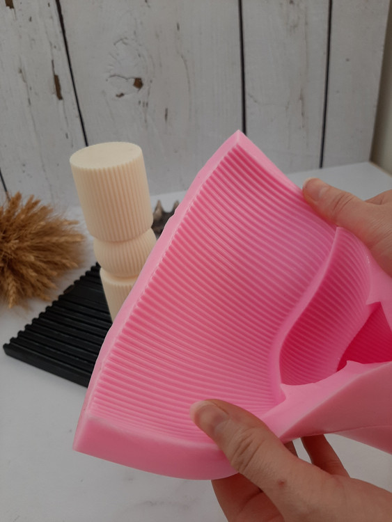قالب شمع سيليکوني مدل استوانه شیاردار توپی با برند #کوشااکسسوری يه کار جدید ، خاص و استثنايي ميباشد اين قالب مناسب شمع سازي ، اکسسوري سنگ مصنوعي ، صابون سازي و رزين ميباشد که با بالاترين کيفيت و بهترين نوع سيليکون توليد شده است قالب با تضمين بدون حباب ، نرم و قابل انعطاف ميباشد