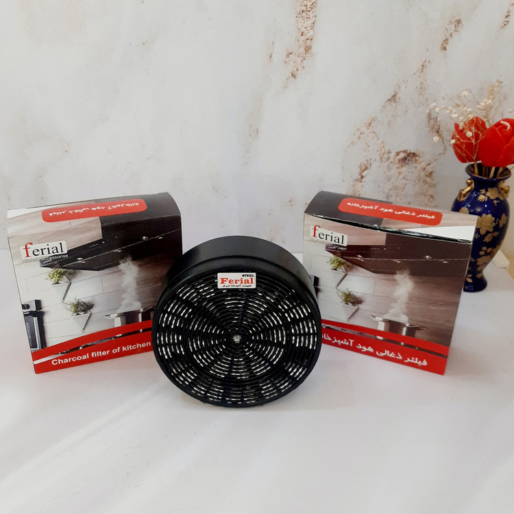 فیلتر زغالی هود فریال Ferial کارتنی و عمده با ذغال کربن سفید درجه یک بهترین وسیله برای زمانی که خروجی هوا به بیرون ساختمان نیست و محدودیت نصب لوله هود خرطومی برای هدایت بو و چربی به بیرون ساختمان است و با قرار دادن فیلتر ذغالی روی خروجی هود چربی و بو از طریق ذغالی های کربن داخل فیلتر جذب می شوند . فیلتر ذغالی فریال Ferial از بهترین ذغالی کربن (ذغال سفید ) تولید شده ، بازه زمانی ۱۸۰۰۰ ساعت برای یک دوره استفاده میباشد قطر فیلتر ذغالی استاندارد و ۱۵ سانت میباشد زمان تعویض فیلتر ذغالی بسته به مصرف بین 2 الی 3 ماه میباشد
