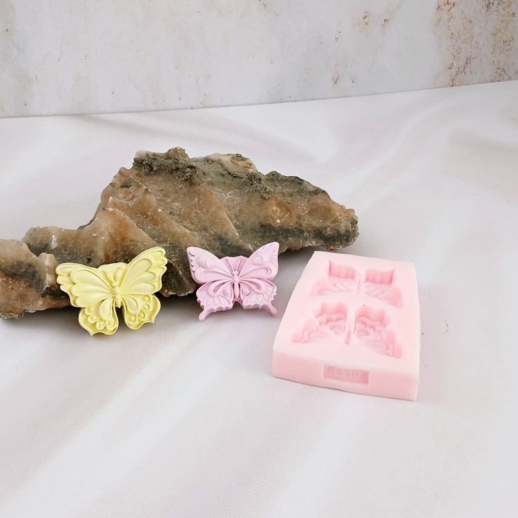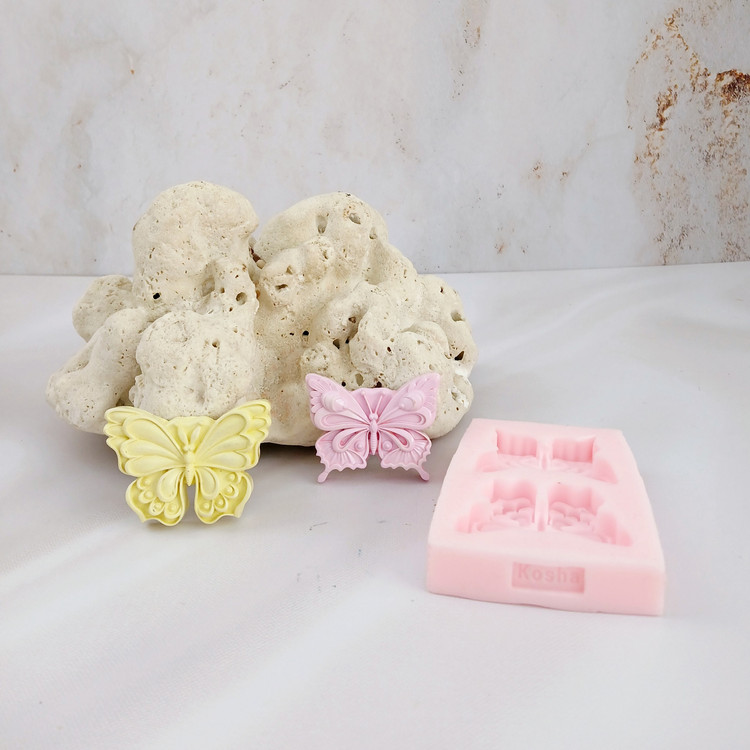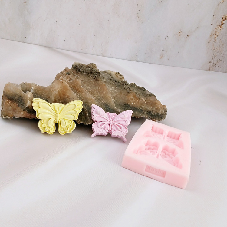 قالب شمع سیلیکونی مدل پروانه 2 تایی کد 01 با برند کوشا کار شیک ، استثنایی و جدید میباشد این قالب مناسب شمع سازی ، اکسسوری سنگ مصنوعی ، صابون سازی ،مجسمه سازی و رزین میباشد که با بالاترین کیفیت و بهترین نوع سیلیکون تولید شده است قالب با تضمین بدون حباب ، نرم و قابل انعطاف میباشد ابعاد حدودی خروجی پروانه از قالب با طول حدود 5 سانت میباشد