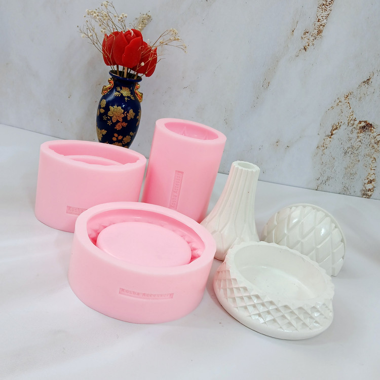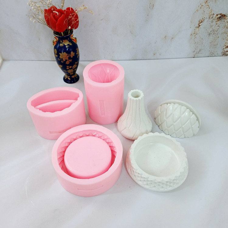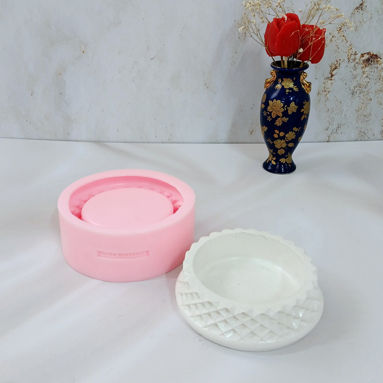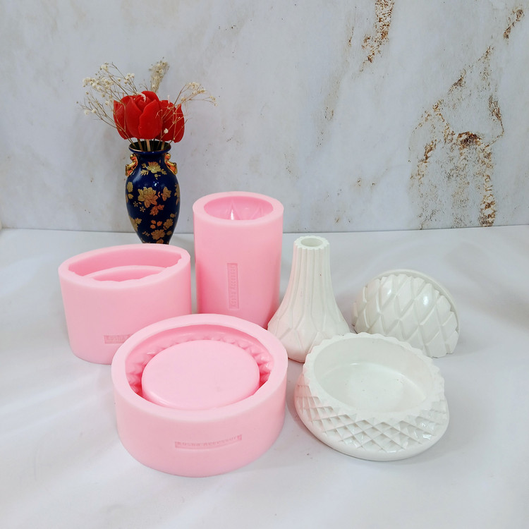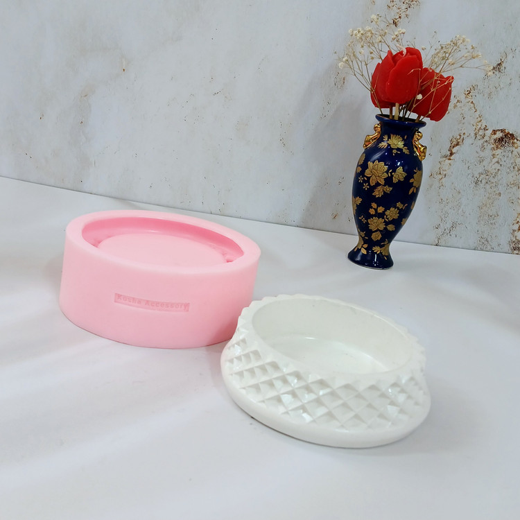 قالب سیلیکونی ست هفتسین طرح لوزی مجموعه 3 عددی شامل پایه آینه ، جاشمعی و ظرف یا کاسه با برند کوشا اکسسوری کار شیک ، استثنایی و جدید میباشد این قالب مناسب ست های هفت سین ، شمع سازی ، اکسسوری سنگ مصنوعی ،مجسمه سازی و رزین میباشد که با بالاترین کیفیت و بهترین نوع سیلیکون تولید شده است قالب با تضمین بدون حباب ، نرم و قابل انعطاف میباشد ابعاد حدودی خروجی پایه آینه لوزی از قالب با ارتفاع 7 سانت و طول 10/5 و عرض 7 سانت و ابعاد حدودی خروجی جاشمعی لوزی از قالب با ارتفاع 11/5 سانت و قطر دهنه بالا 3/5 و قطر کف جا شمعی 8/5سانت و ابعاد حدودی ظرف طرح لوزی از قالب با قطر کف 13 و قطر دهنه بالا 11/5 سانت و ارتفاع 4 سانت میباشد.