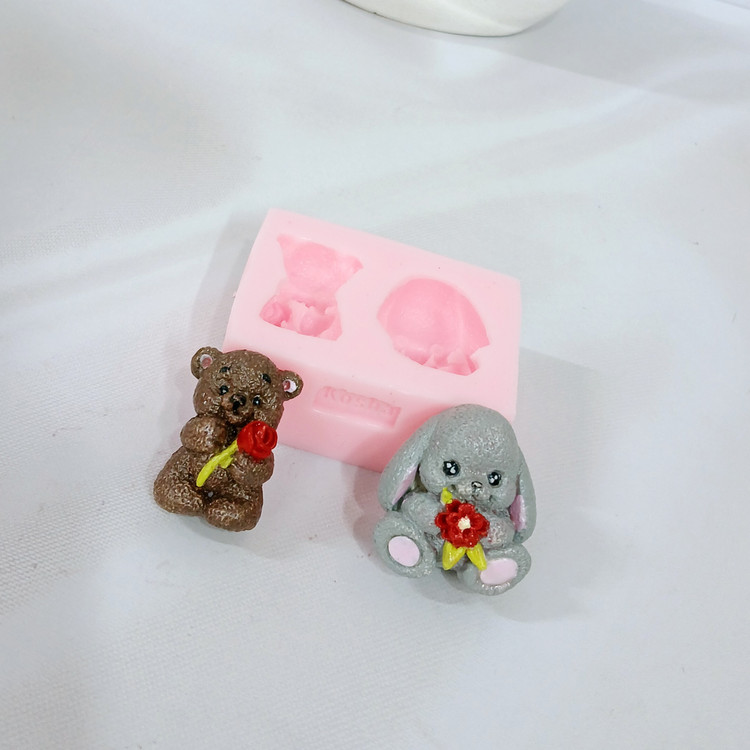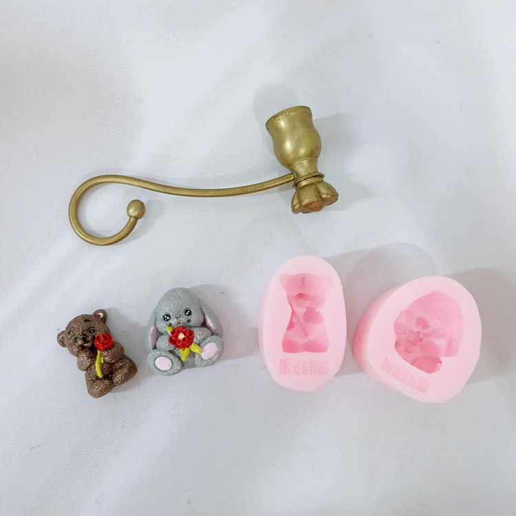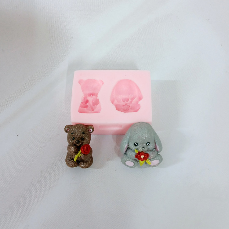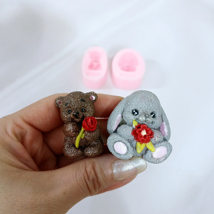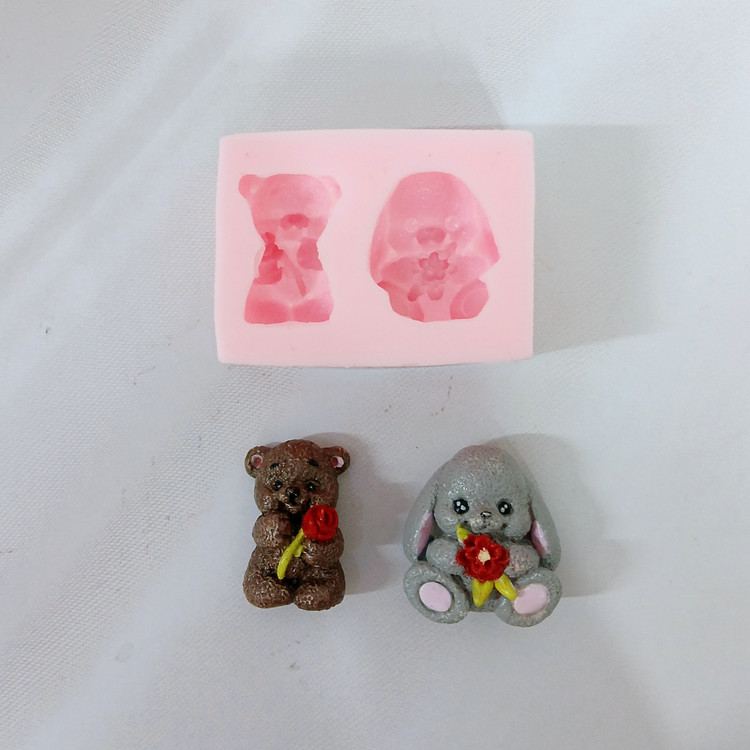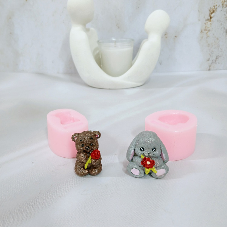 قالب شمع سیلیکونی مدل گیفت خرس و خرگوش گلدار 2تایی با برند کوشا کاربردی و استثنایی و جدید میباشد این قالب مناسب شمع سازی ، اکسسوری سنگ مصنوعی ، صابون سازی و رزین میباشد که با بالاترین کیفیت و بهترین نوع سیلیکون تولید شده است قالب با تضمین بدون حباب ، نرم و قابل انعطاف میباشد ابعاد خروجی گیفت خرس از قالب با طول 3/5 و حدود عرض 2 سانت و با ارتفاع حدود 1/5 سانت و ابعاد خروجی گیفت خرگوش از قالب با طول 3/5 و عرض 3/5 سانت و با ارتفاع 2 سانت میباشد