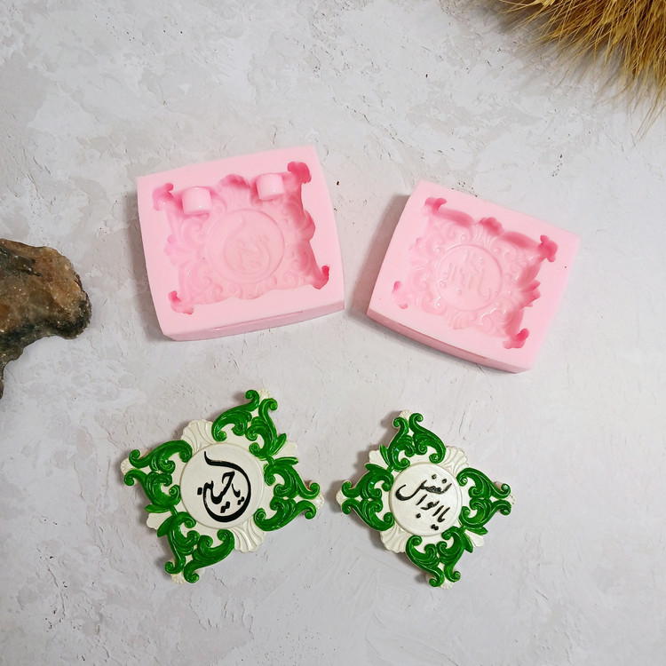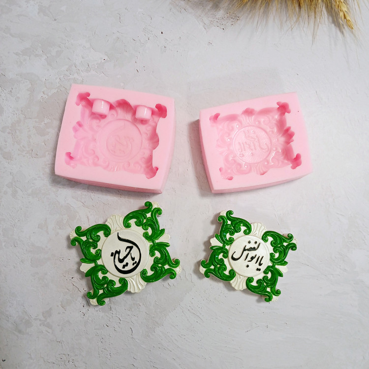 قالب شمع سیلیکونی مدل کتیبه یا جاشمعی یاحسین و کتیبه یا ابوالفضل بسته دو تایی با برند کوشا اکسسوری کار استثنایی و مناسبتی و مذهبی میباشند این قالب ها مناسب شمع سازی ، اکسسوری سنگ مصنوعی ، مجسمه سازی و رزین میباشد که با بالاترین کیفیت و بهترین نوع سیلیکون تولید شده است قالب ها با تضمین بدون حباب ، نرم و قابل انعطاف میباشند ابعاد حدودی خروجی کتیبه و جاشمعی یاحسین از قالب با پهنای 2 سانت و طول و عرض 8 * 9 سانت و قطر جاشمعی 1/5 سانت برای شمع های قلمی و ابعاد حدودی خروجی کتیبه یا ابوالفضل از قالب با پهنای حدود 1/5 سانت و طول و عرض 7 * 8 سانت میباشد.