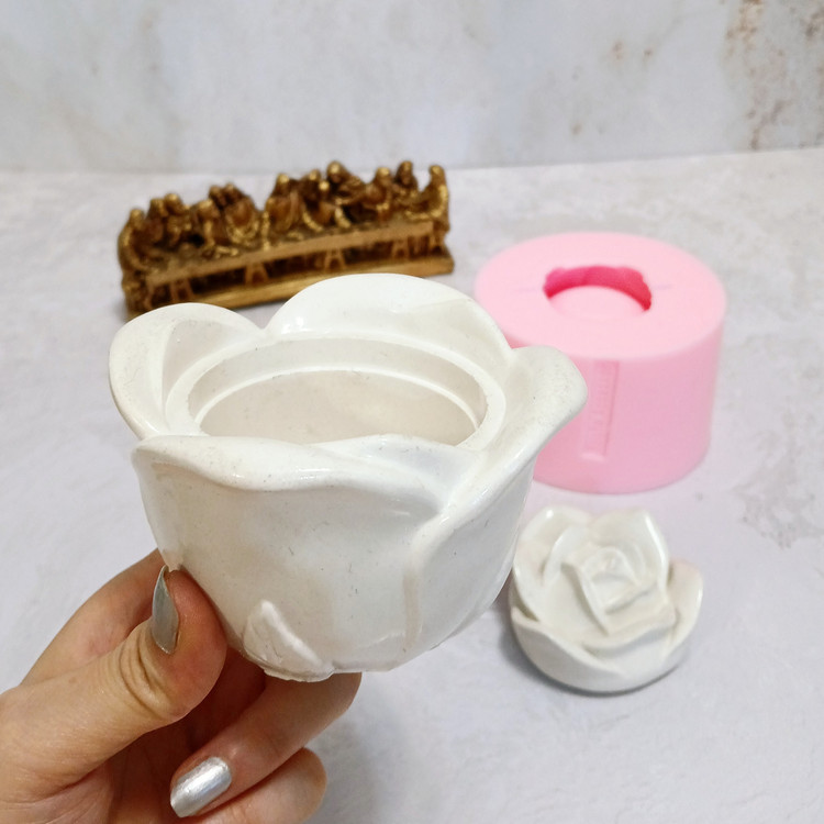 قالب سیلیکونی مدل بانکه گل رز درب دار مجموعه 2 عددی با برند #کوشا اکسسوری koshaaccessory کار شیک ، استثنایی و جدید میباشد این قالب مناسب شمع سازی ، اکسسوری سنگ مصنوعی ،مجسمه سازی و رزین میباشد که با بالاترین کیفیت و بهترین نوع سیلیکون تولید شده است قالب با تضمین بدون حباب ، نرم و قابل انعطاف میباشد ابعاد حدودی خروجی بانکه از قالب با ارتفاع 6/5 سانت بدون درب و قطر بیرونی بانکه 10سانت و قطر درونی بانکه 6 سانت و ارتفاع با درب بانکه 9 سانت میباشد.(قالب دارای دو برش از طرفین جهت درآوردن خروجی بانکه از قالب میباشد)