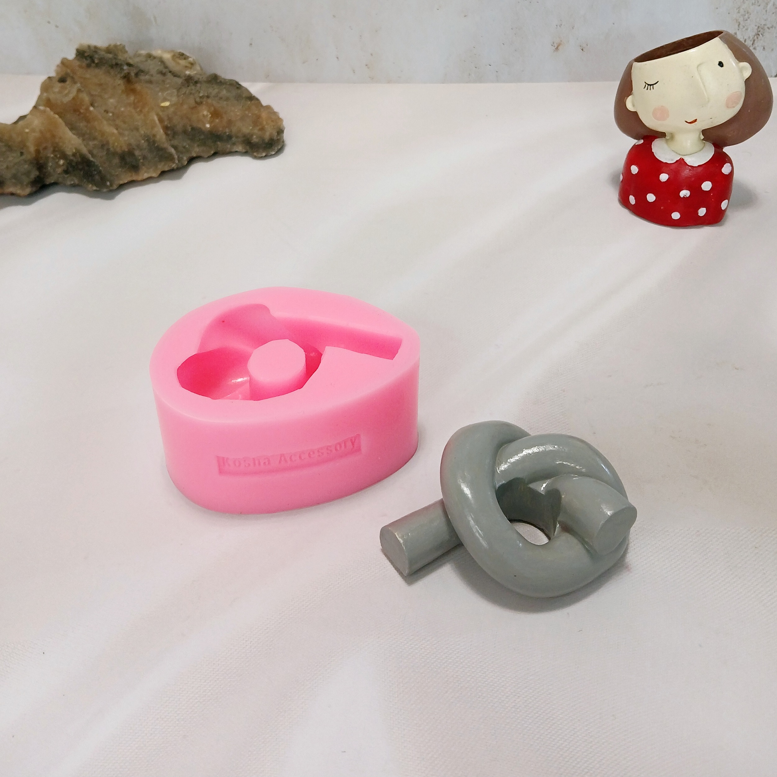 قالب سنگ مصنوعی سیلیکونی مدل جاشمعی قلمی گره با برند #کوشااکسسوری koshaaccessory مدلی جدید ، استثنایی میباشد این قالب مناسب شمع سازی ، اکسسوری سنگ مصنوعی ، صابون سازی ،مجسمه سازی و رزین میباشد که با بالاترین کیفیت و بهترین نوع سیلیکون تولید شده است قالب با تضمین بدون حباب ، نرم و قابل انعطاف میباشد سایز حدودی خروجی جاشمعی قلمی گره از قالب با ابعاد 9 * 7 و ارتفاع 3/5 سانت و قطر داخلی جاشمعی 2 سانت میباشد .