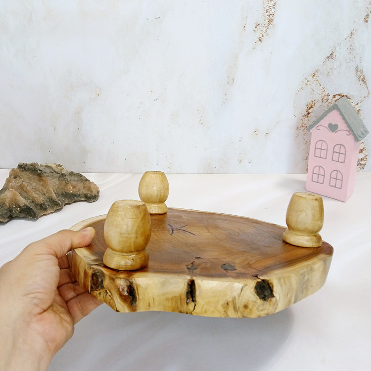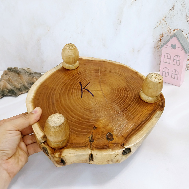 ابعاد تخته سرو پایه دار طرح خورشید کد K101 با اندازه 28 * 26 سانت با ارتفاع ۸ سانت میباشد تخته روستیک از چوب درخت توت درست شده و پایه ها از چوب گردو میباشد دارای 3 تا پای هستش و شکل روی تخته گرد دفرمه میباشد