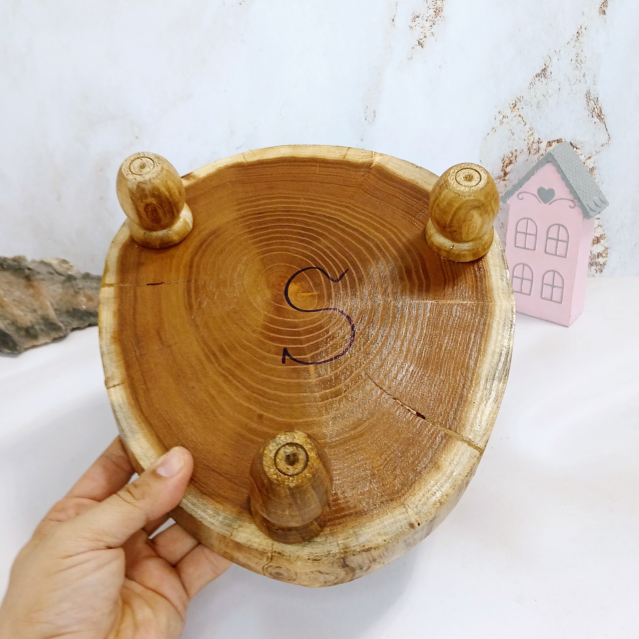 ابعاد تخته سرو پایه دار طرح خورشید کد S101 با اندازه 29 * 25 سانت با ارتفاع ۸ سانت میباشد تخته روستیک از چوب درخت توت درست شده و پایه ها از چوب گردو میباشد دارای 3 تا پای هستش و شکل روی تخته گرد دفرمه میباشد