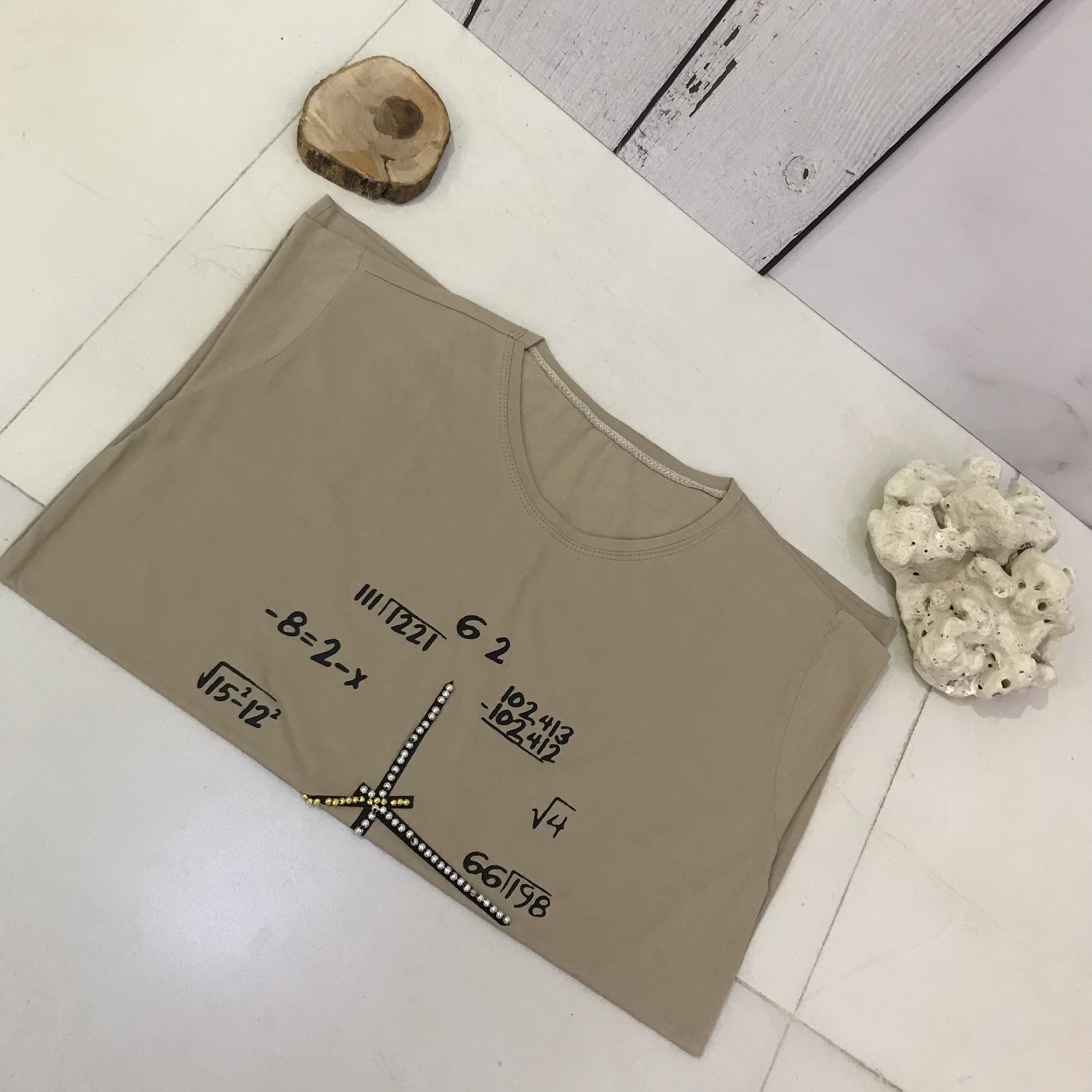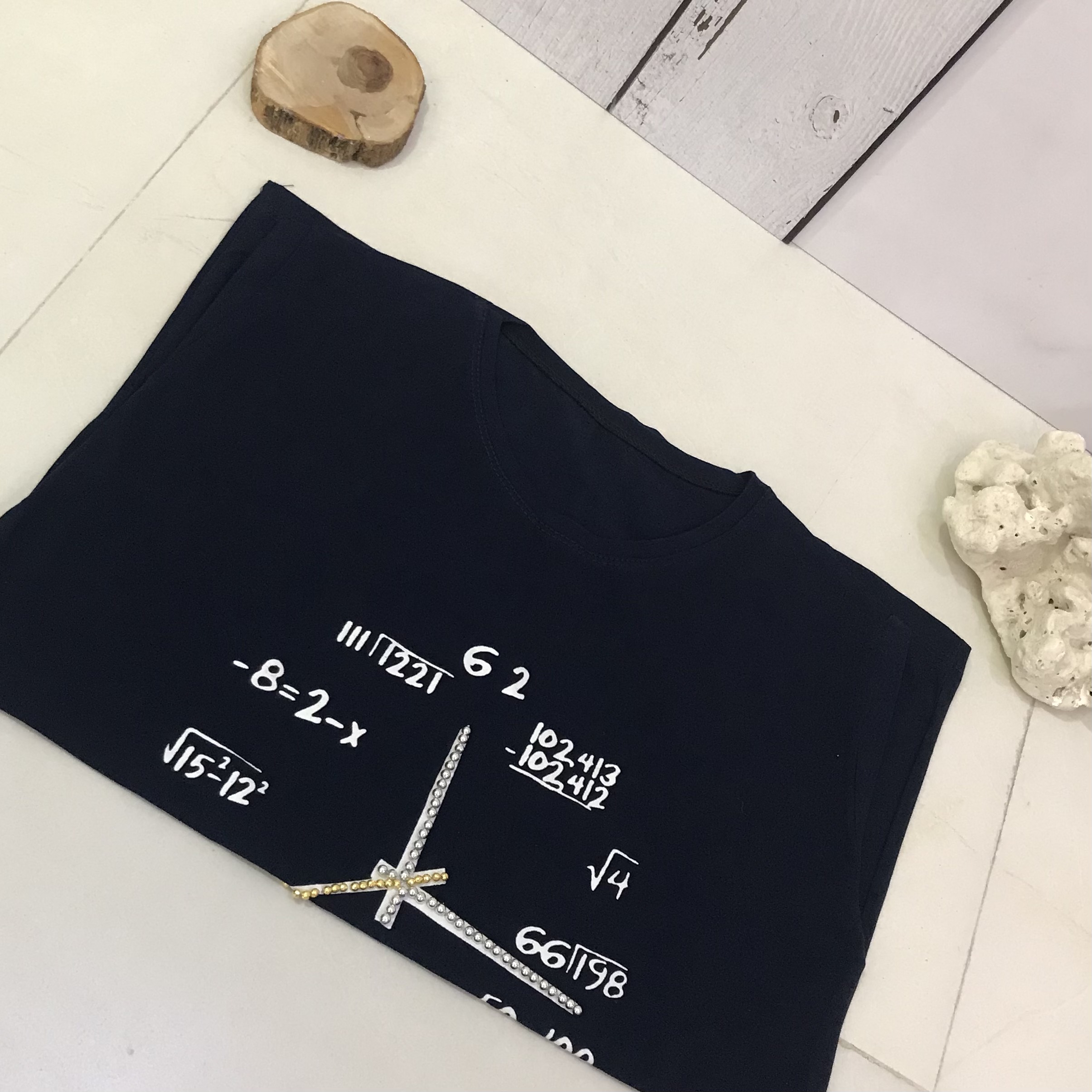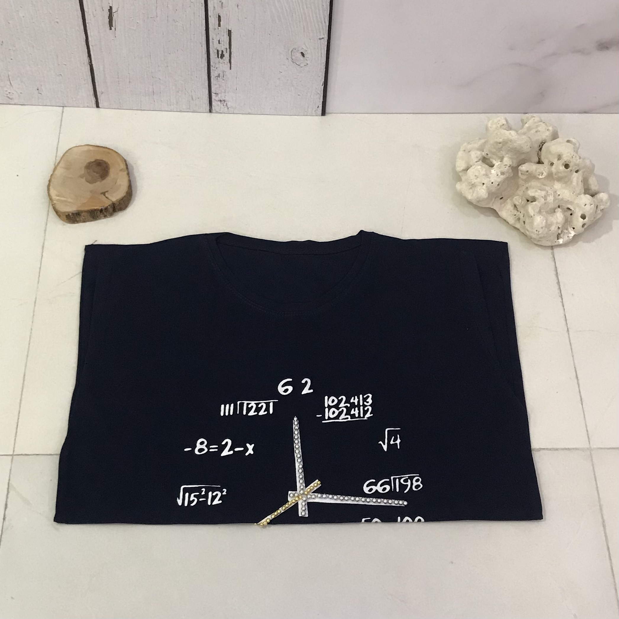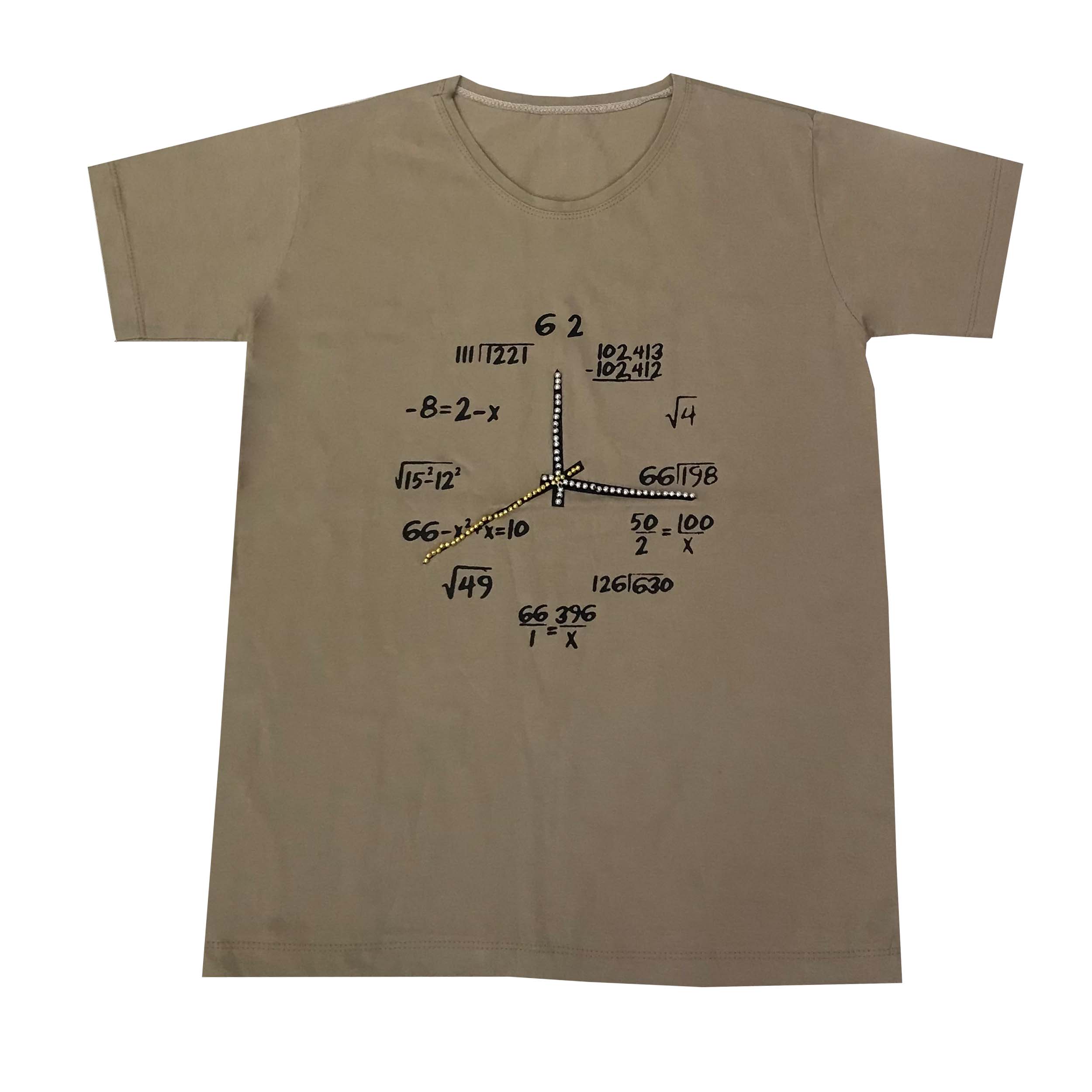 تی‌شرت آستین کوتاه زنانه مدل ساعت نگین دار