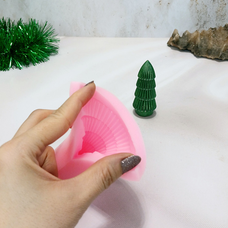 قالب شمع سیلیکونی مدل درخت کاج طبقه ای وارمری با برند #کوشااکسسوری koshaaccessory مدلی جدید ، استثنایی میباشد این قالب مناسب شمع سازی ، اکسسوری سنگ مصنوعی ، صابون سازی ،مجسمه سازی و رزین میباشد قالب درخت کاج وارمری جزو کارای مناسبتی و سال نو میلادی میباشد که با بالاترین کیفیت و بهترین نوع سیلیکون تولید شده است قالب با تضمین بدون حباب ، نرم و قابل انعطاف میباشد سایز حدودی خروجی درخت کاج از قالب با قطر 3 سانت و ارتفاع 8 سانت میباشد . (قالب دارای یک برش از یک طرف جهت درآوردن خروجی از قالب میباشد)