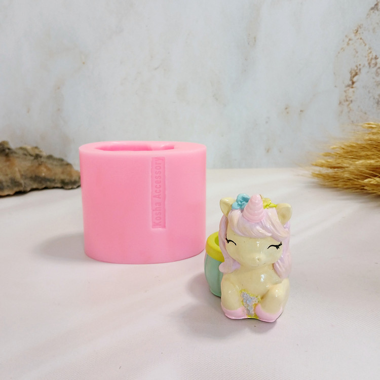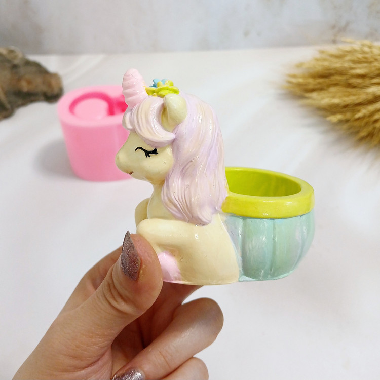 ابعاد حدودی خروجی کار: با اندازه 8 * 5/5 سانت و ارتفاع 8 سانت میباشد .قطر داخلی جاشمعی اسب یونیکورن حدود 4 سانت میباشد