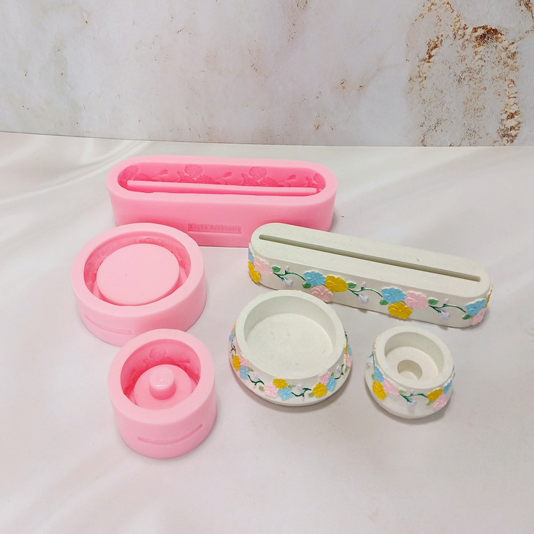قالب سنگ مصنوعی سیلیکونی مدل ست هفت سین مارسلا کد 02 مجموعه 3 تایی با برند #کوشااکسسوری koshaaccessory مدلی جدید ، استثنایی و مناسبتی میباشد این قالب مناسب شمع سازی ، اکسسوری سنگ مصنوعی ، صابون سازی ،مجسمه سازی و رزین میباشد قالب ست مارسلا 3 تیکه مناسب ست هفت سین نوروزی نیز میباشد که با بالاترین کیفیت و بهترین نوع سیلیکون تولید شده است قالب با تضمین بدون حباب ، نرم و قابل انعطاف میباشد سایز حدودی خروجی جاشمعی مارسلا از قالب با قطر بیرونی 7 سانت و قطر داخلی 4/5 سانت و ارتفاع 4 سانت و قطر جاشمعی 2 سانت و سایز حدودی خروجی ظرف یا کاسه هفت سین مارسلا از قالب با قطر بیرونی 11 سانت و قطر داخلی 7/5 سانت و ارتفاع 3/5 سانت و ابعاد حدودی خروجی پایه آینه مارسلا از قالب با ابعاد بیرونی 6 * 22/5 سانت و ارتفاع 4 سانت و ابعاد جای آینه داخلی طول 20 سانت میباشد . ست هفت سین 3 تیکه مارسلا کد 02 شامل ظرف یا کاسه هفت سین و جاشمعی و پایه آینه میباشد