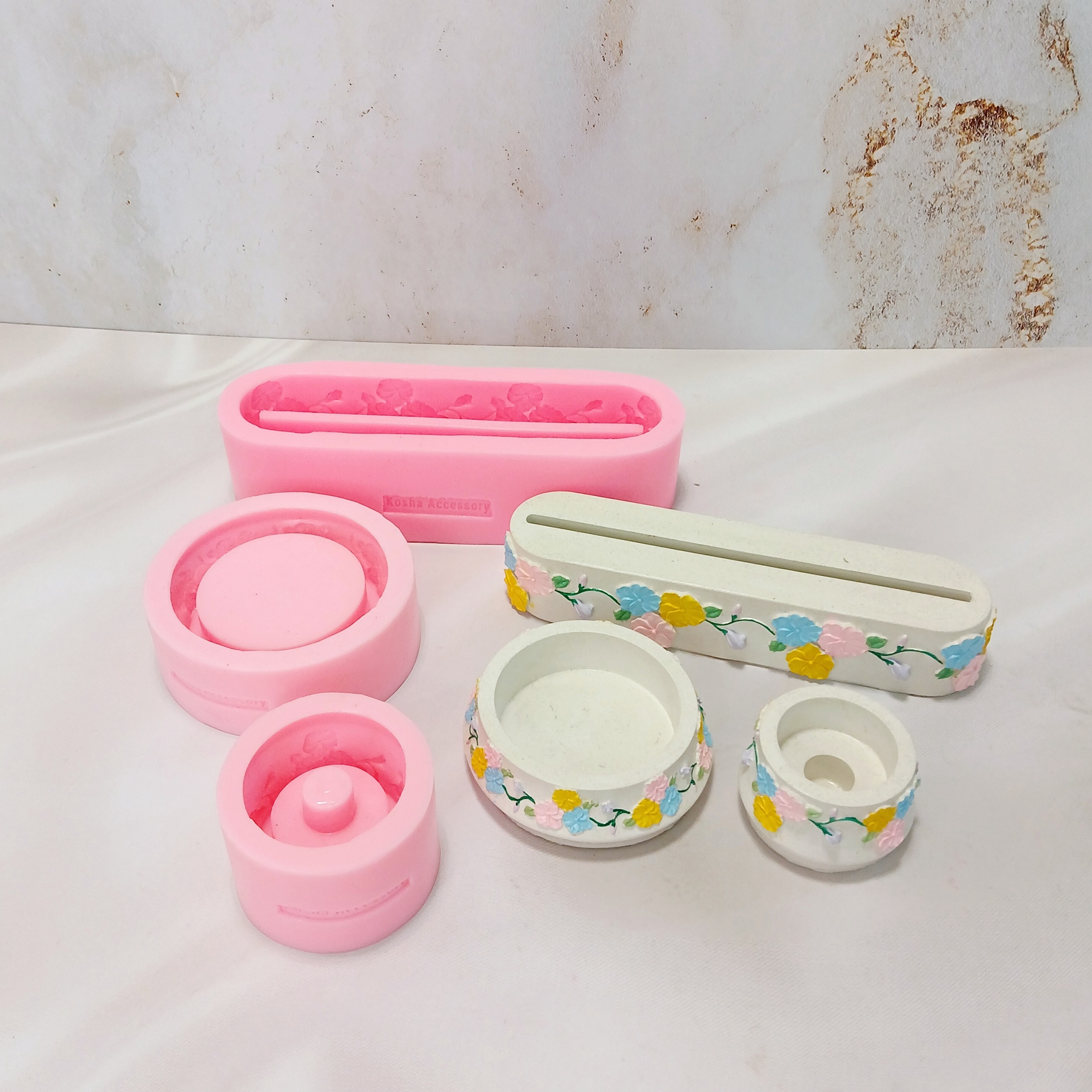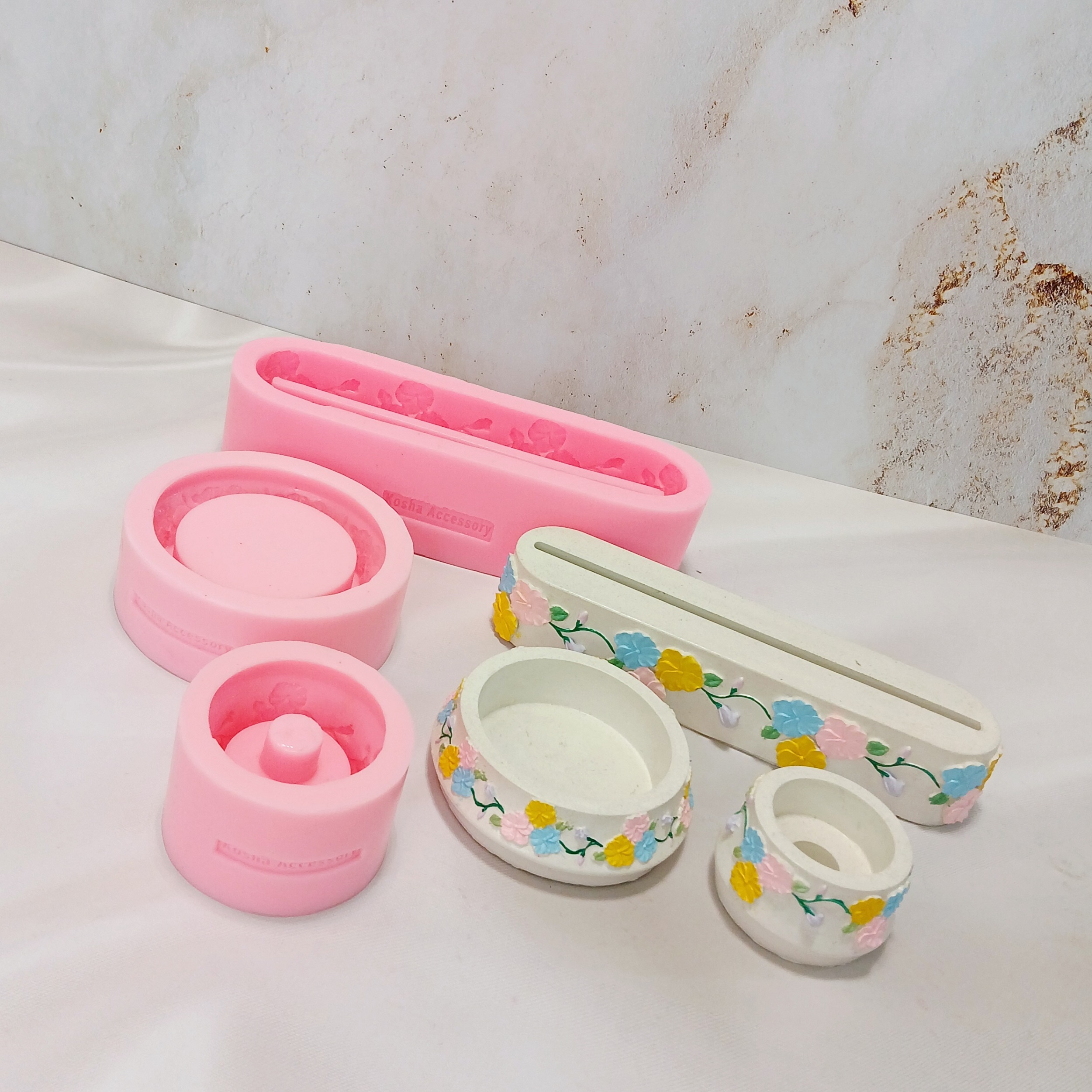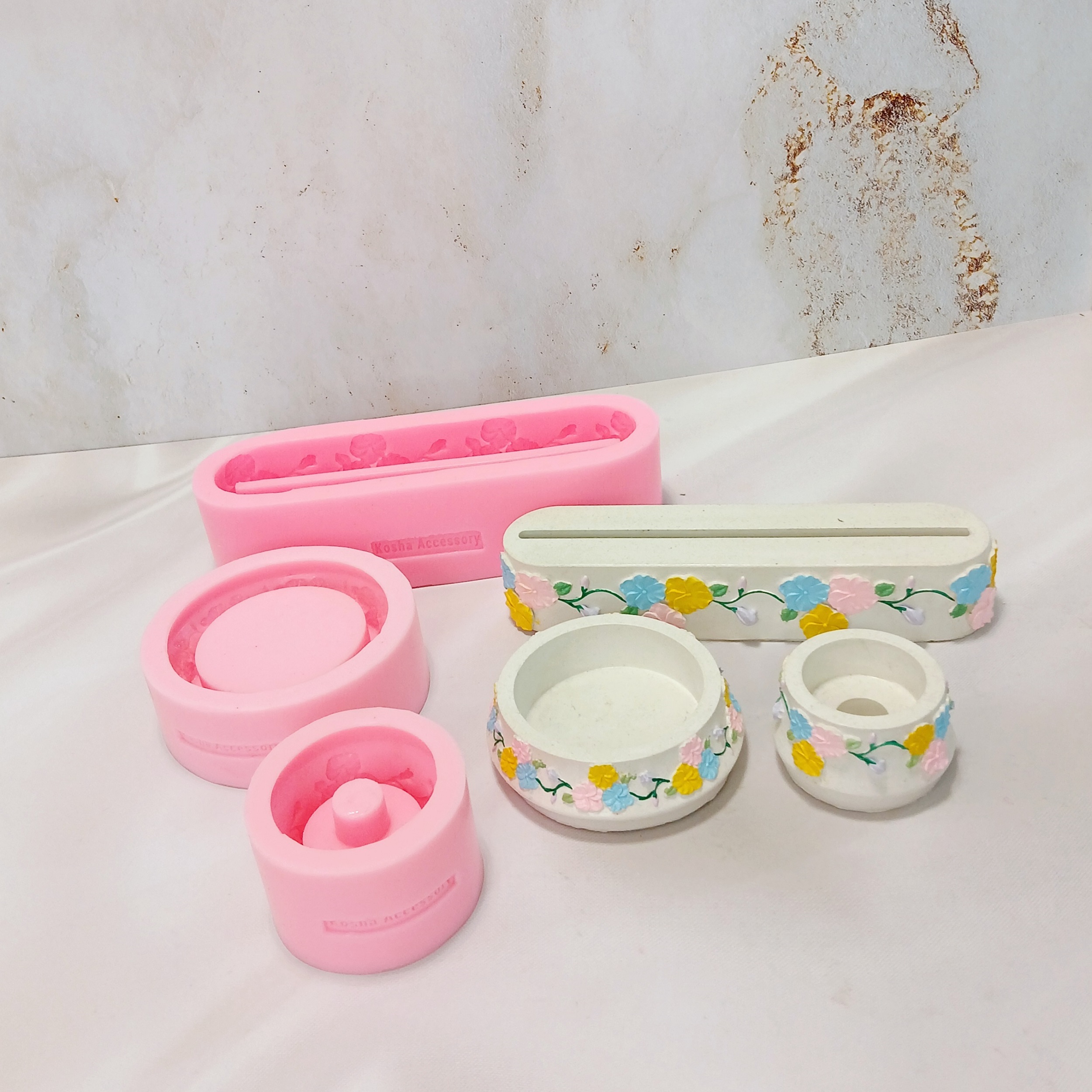 قالب سنگ مصنوعی سیلیکونی مدل ست هفت سین مارسلا کد 02 مجموعه 3 تایی با برند #کوشااکسسوری koshaaccessory مدلی جدید ، استثنایی و مناسبتی میباشد این قالب مناسب شمع سازی ، اکسسوری سنگ مصنوعی ، صابون سازی ،مجسمه سازی و رزین میباشد قالب ست مارسلا 3 تیکه مناسب ست هفت سین نوروزی نیز میباشد که با بالاترین کیفیت و بهترین نوع سیلیکون تولید شده است قالب با تضمین بدون حباب ، نرم و قابل انعطاف میباشد سایز حدودی خروجی جاشمعی مارسلا از قالب با قطر بیرونی 7 سانت و قطر داخلی 4/5 سانت و ارتفاع 4 سانت و قطر جاشمعی 2 سانت و سایز حدودی خروجی ظرف یا کاسه هفت سین مارسلا از قالب با قطر بیرونی 11 سانت و قطر داخلی 7/5 سانت و ارتفاع 3/5 سانت و ابعاد حدودی خروجی پایه آینه مارسلا از قالب با ابعاد بیرونی 6 * 22/5 سانت و ارتفاع 4 سانت و ابعاد جای آینه داخلی طول 20 سانت میباشد . ست هفت سین 3 تیکه مارسلا کد 02 شامل ظرف یا کاسه هفت سین و جاشمعی و پایه آینه میباشد