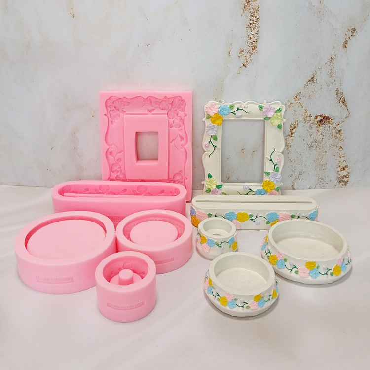 قالب سنگ مصنوعی سیلیکونی مدل ست هفت سین مارسلا کد 05 مجموعه 5 تایی با برند #کوشااکسسوری koshaaccessory مدلی جدید ، استثنایی و مناسبتی میباشد این قالب مناسب شمع سازی ، اکسسوری سنگ مصنوعی ، صابون سازی ،مجسمه سازی و رزین میباشد قالب ست مارسلا 5 تیکه مناسب ست هفت سین نوروزی نیز میباشد که با بالاترین کیفیت و بهترین نوع سیلیکون تولید شده است قالب با تضمین بدون حباب ، نرم و قابل انعطاف میباشد سایز حدودی خروجی جاشمعی مارسلا از قالب با قطر بیرونی 7 سانت و قطر داخلی 4/5 سانت و ارتفاع 4 سانت و قطر جاشمعی 2 سانت و سایز حدودی خروجی ظرف یا کاسه هفت سین مارسلا از قالب با قطر بیرونی 11 سانت و قطر داخلی 7/5 سانت و ارتفاع 3/5 سانت و ابعاد حدودی خروجی قاب آینه مارسلا از قالب با ابعاد بیرونی 15/5 * 20 سانت و ابعاد داخلی قاب آینه 8 * 12/5 سانت میباشد و ابعاد حدودی خروجی ظرف سبزه مارسلا از قالب با قطر بیرونی 13 سانت و قطر داخلی 10 سانت و ارتفاع 4 سانت و سایز حدودی خروجی پایه آینه مارسلا از قالب با ابعاد بیرونی 6 * 22/5 سانت و ارتفاع 4 سانت و ابعاد جای آینه داخلی طول 20 سانت میباشد . ست هفت سین 5 تیکه مارسلا کد 05 شامل ظرف یا کاسه هفت سین ، جاشمعی ، قاب آینه ، ظرف سبزه و پایه آینه میباشد