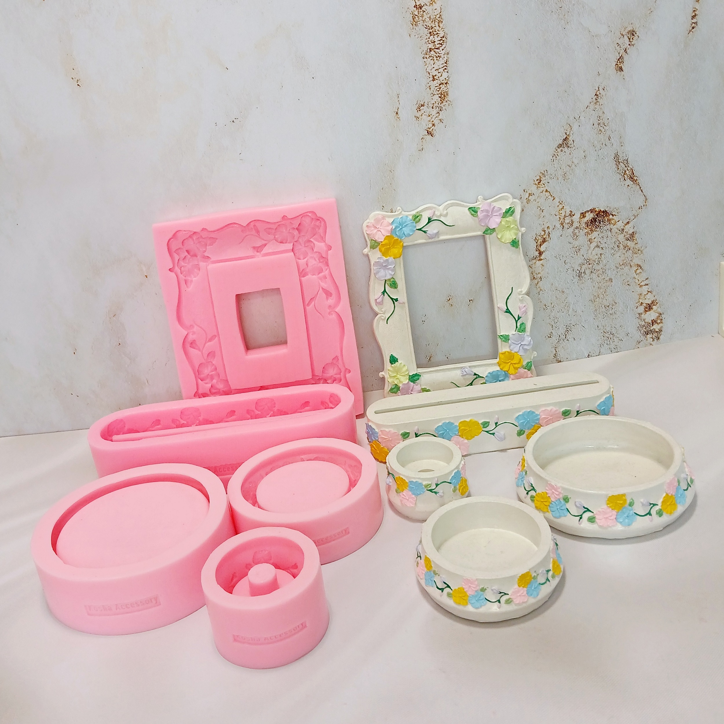 قالب سنگ مصنوعی سیلیکونی مدل ست هفت سین مارسلا کد 05 مجموعه 5 تایی با برند #کوشااکسسوری koshaaccessory مدلی جدید ، استثنایی و مناسبتی میباشد این قالب مناسب شمع سازی ، اکسسوری سنگ مصنوعی ، صابون سازی ،مجسمه سازی و رزین میباشد قالب ست مارسلا 5 تیکه مناسب ست هفت سین نوروزی نیز میباشد که با بالاترین کیفیت و بهترین نوع سیلیکون تولید شده است قالب با تضمین بدون حباب ، نرم و قابل انعطاف میباشد سایز حدودی خروجی جاشمعی مارسلا از قالب با قطر بیرونی 7 سانت و قطر داخلی 4/5 سانت و ارتفاع 4 سانت و قطر جاشمعی 2 سانت و سایز حدودی خروجی ظرف یا کاسه هفت سین مارسلا از قالب با قطر بیرونی 11 سانت و قطر داخلی 7/5 سانت و ارتفاع 3/5 سانت و ابعاد حدودی خروجی قاب آینه مارسلا از قالب با ابعاد بیرونی 15/5 * 20 سانت و ابعاد داخلی قاب آینه 8 * 12/5 سانت میباشد و ابعاد حدودی خروجی ظرف سبزه مارسلا از قالب با قطر بیرونی 13 سانت و قطر داخلی 10 سانت و ارتفاع 4 سانت و سایز حدودی خروجی پایه آینه مارسلا از قالب با ابعاد بیرونی 6 * 22/5 سانت و ارتفاع 4 سانت و ابعاد جای آینه داخلی طول 20 سانت میباشد . ست هفت سین 5 تیکه مارسلا کد 05 شامل ظرف یا کاسه هفت سین ، جاشمعی ، قاب آینه ، ظرف سبزه و پایه آینه میباشد